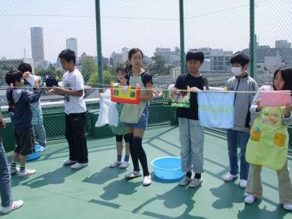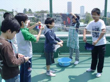 家からハンカチや靴下を持ってきて、もみ洗いをしたりつまみ洗いをしました。