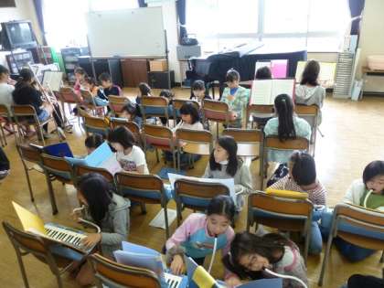 ミュージッククラブも朝練習で運動会に向けて頑張っています。昨年の6年生が抜けた穴を取り戻すべく、新6年生を中心に一生懸命練習に取り組んでいます。
