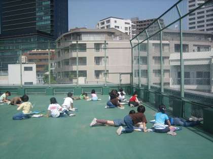 今日の社会科の時間は、方位磁針を持って屋上へ上がりました。