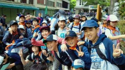 奇跡的な天気回復の中、5年生の遠足は、予定通り実施です。注意事項を確認し、グループごとに出発です。