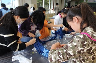 藍染め体験 公開日 2016/01/15 更新日 2016/01/15 今日のできごと 今日は、多摩大学村山ゼミ・「日本大好きプロジェクト」の皆さんを講師に迎え、3〜6年生が藍染め体験に挑戦しました。日本の伝統文化を直接体験できるとあって、みんな目を輝かせて活動しました。1つの作品が10m以上の大作で、みんなで力を合わせて完成しました。これら作品は、来月の展覧会で展示します。乞うご期待! いいね(0)