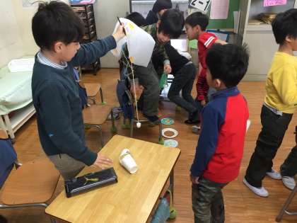 アイディアいっぱいの手作りおもちゃ、そして優しく説明してくれる2年生。
