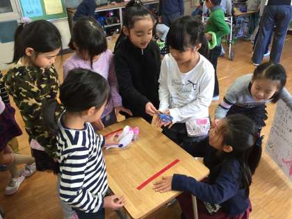 1年生は昨日、うきうきしながら2年生の教室に出かけました。