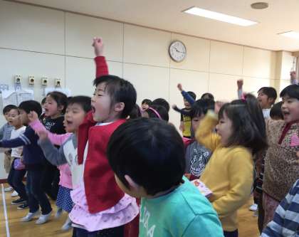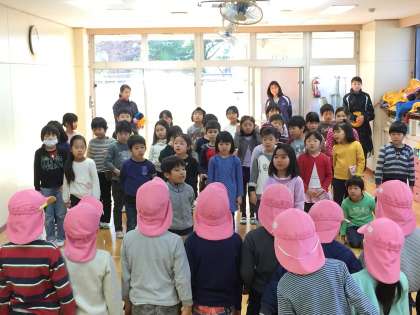 元気いっぱいに学校紹介をしたり、歌ったり、遊んだりして、あっという間の1時間でした。
