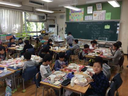 菅刈小学校の給食は本当に美味しいです。 今日もみんな最高の笑顔で給食をいただきました。