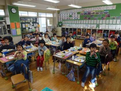 東の方角を向き、一言もしゃべらず黙々と食べる子供たち。 願い事が叶うといいなと楽しそうに話していました!