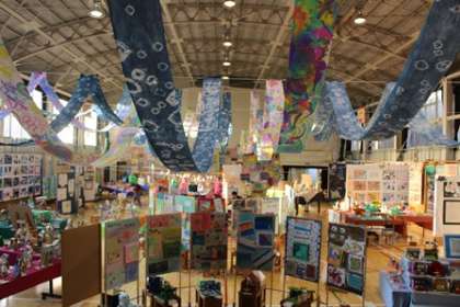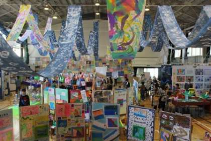今日と明日の2日間。開校140周年記念展覧会が開催されています。体育館は菅刈美術館に変身!どの学年も力作揃いです!