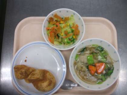2月24日 リクエスト 公開日 2016/02/24 更新日 2016/02/24 給食 献立 揚げパン、ワンタンスープ、パリパリサラダ、牛乳 6年生のリクエストは、きなこ揚げパンでした。 主な材料の産地 生姜 高知県、たまねぎ 千葉県、にんじん 埼玉県、 チンゲンサイ・きゃべつ 愛知県、きゅうり 宮崎県、 もやし 神奈川県、豚肉 熊本県 いいね(0)