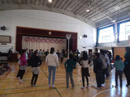 とお願いし、6年生と一緒にチェッコリ玉入れを。