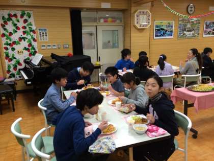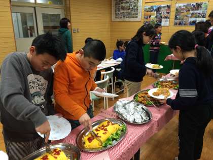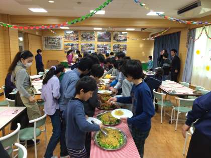 六年生は大興奮。みんな感謝の気持ちをもっていただきます。
