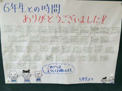 組体操でずっと力を合わせて練習してきた5年生。今朝素敵なお手紙が教室に届きました。6年生はじっと手紙を読んでいました。来年はきっと頼もしいリーダーとして活躍してくれます。ありがとう5年生。