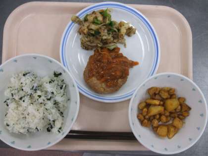 おかか和え、大豆とじゃがいもの甘辛煮、