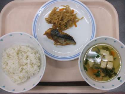ごはん、サバのみそ煮、切り干し大根の炒め煮、