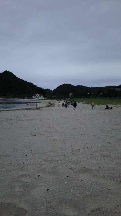 これから砂浜を歩いて、宿舎へ向かいます!