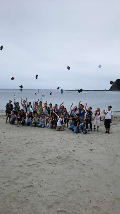 興津海岸で貝殻やビーチグラスを拾って、集合写真を撮りました。