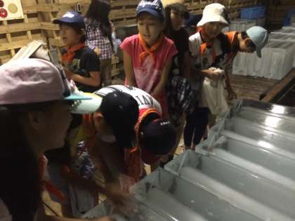 漁港見学のあと、氷の部屋にみんなで入りました。寒い。