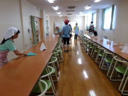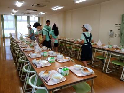 一人一人が自分の係の役割をしっかりとはたしています。食事係の児童も、とても手際よく準備を進めています。