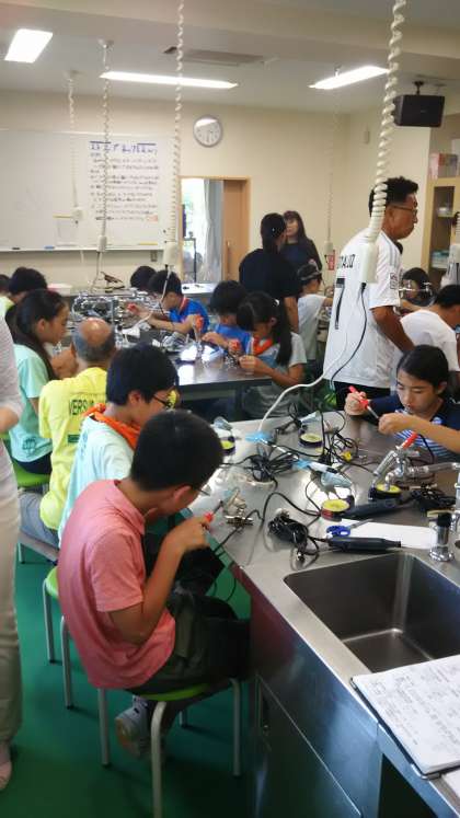 ルターという道具で、ビーチグラスと貝に穴を開けました。