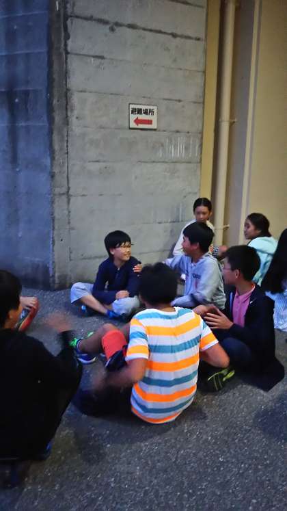 キャンプファイヤー前にわくわくしながら待っている様子です。