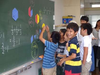 水曜日の5時間目に2組は算数の授業がありました!筑波大学附属小学校の大野先生が来てくださり、分数の計算について楽しく学習しました。