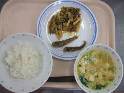 ごはん、チンジャオロースー、中華コーンスープ、