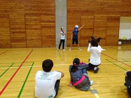 最初のゲームは、タオルでポン次のゲームはジャンケン列車です。