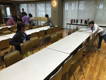食事係はテーブルを拭いたり、床に落ちているものを拾ったりして、最後の片付け、確認をします。