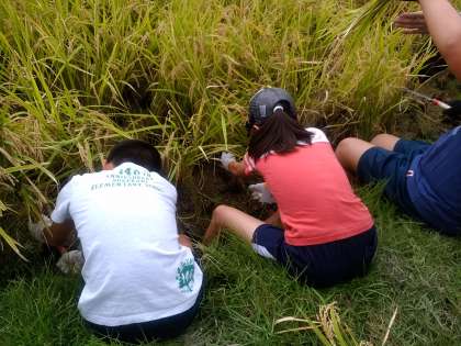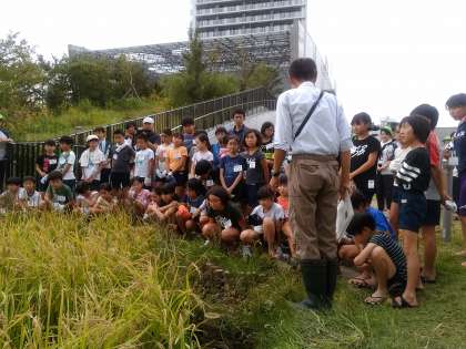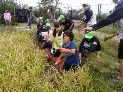 大橋ジャンクションの田んぼで稲刈りをさせていただきました。