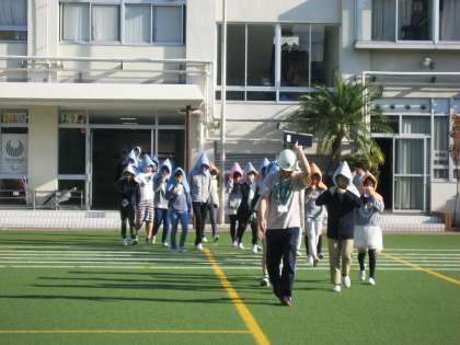 ハンカチで口元を押さえ、身を低くし壁にそって進むことを全員が実践できました。