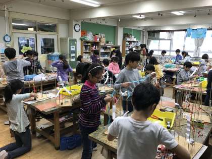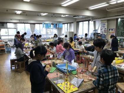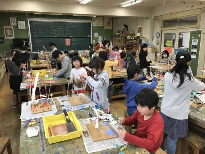 図工で取り組んでいるモンキッ木ーの色を塗りはじめ、一人一人の作品の世界観がより表現されています。完成が楽しみです。
