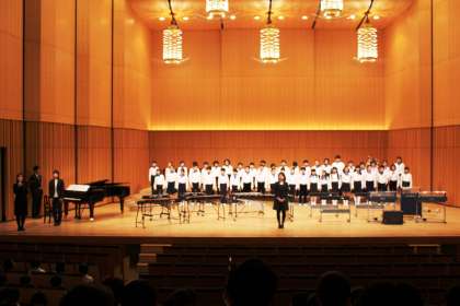 本校の5年生児童が参加し、合唱「かならず かならず」、合奏「ジッパ・ディ・ドゥーダ」を演奏しました。