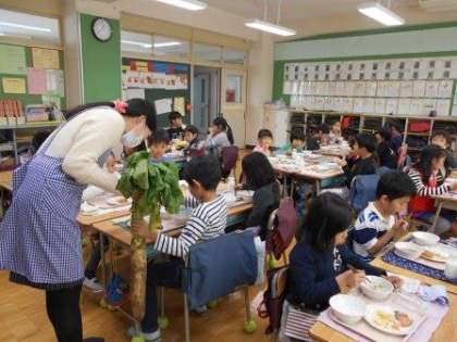 和食の献立 公開日 2016/12/05 更新日 2016/12/05 2年 先週の給食で、ふろふき大根が出ました。 栄養士の先生が、 「今日の大根はね、こんなに大きいんだよ。」 と、実物を見せに来てくれました。 みんな、大きな大根に大喜びです。 おいしくいただくことができました。 いいね(0)