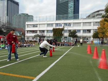 避難訓練の後、消火訓練を行いました。