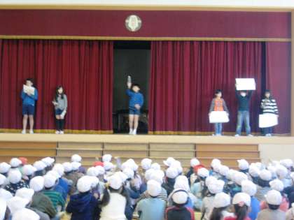 今朝は、集会委員会が計画したゲーム集会をしました。
