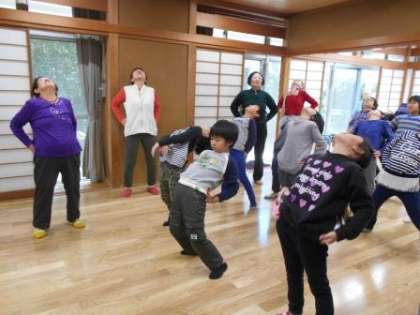 やさしいおばあちゃんたちと、思いきり体を動かしました。