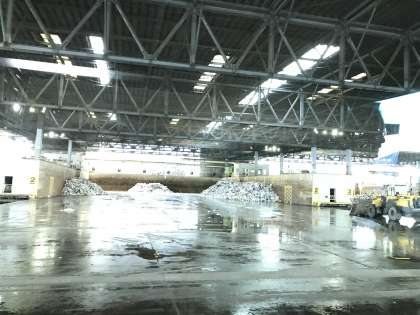施設の中で勉強をした後は、バスに乗って埋立処分場の見学です。まずは埋立処分場の内側の見学をしました。粗大ゴミが1日に250トンも運ばれてくることなど、説明を聞きながら実際に見ながら勉強することができました。