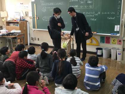 今日のお昼に大橋ジャンクションで育てたお米が学校に届きました!