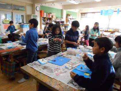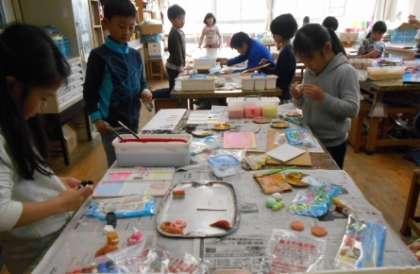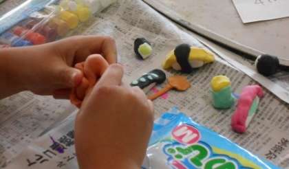真っ白い粘土に、思い思いの色の絵の具を混ぜて、