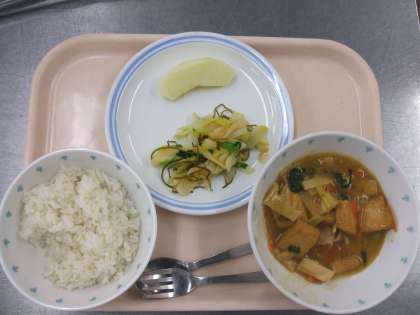 ごはん、ジャージャン豆腐、ちゅうかふう野菜、