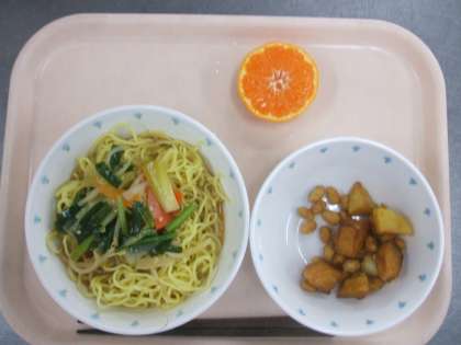 みそラーメン、大豆とじゃがいもの甘から揚げ、
