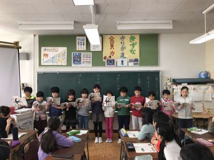 詩を楽しもうでは、好きな詩を選んでグループごとに発表会をしました。詩のイメージを大切にしながら、工夫して読むことができました。次は野原の仲間を思いうかべて、詩を書きたいと思います。