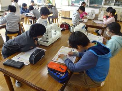 今回から5年生は家庭科でミシンを使う学習に入りました。