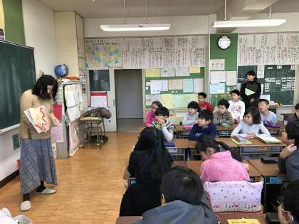 今日は「賢者のおくりもの」を読んでいただきました。相手のことを思いやり、プレゼントをおくりあう場面の感想が一番多く出ていました。今日もすてきなお話をありがとうございました。