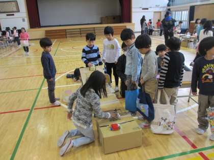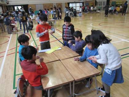 2年生となかよし その2 公開日 2017/02/09 更新日 2017/02/09 1年 「いらっしゃいませ!!」と元気で優しい2年生。 どのお店もとても工夫されたおもちゃで、1年生はとっても楽しそうに笑顔で回っていました。 いいね(0)