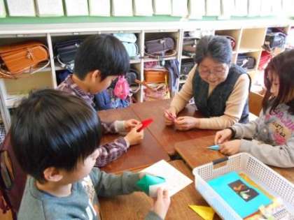 中には、逆に自分のできる折り紙を教えてあげる人もいました。