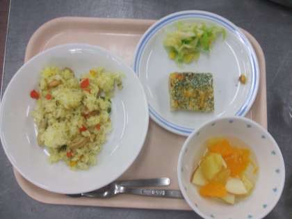 2月20日 スペイン料理 公開日 2017/02/20 更新日 2017/02/20 給食 献立 パエリア、スパニッシュオムレツ、 コールスローサラダ、マチェドニア、牛乳 マチェドニアは、日本ではフルーツポンチのような デザートです。 材料の主な産地 きゃべつ 千葉県多古町、 にんにく 青森県、たまねぎ・じゃがいも 北海道、 パセリ 静岡県、ピーマン 宮崎県 いいね(0)