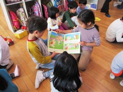 リーディングバディでは、保育園のお友達を前に、練習の成果を発揮して上手に読んであげていまた。