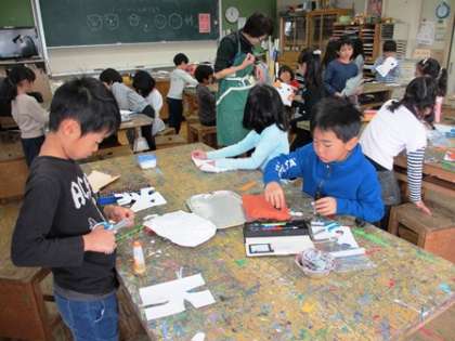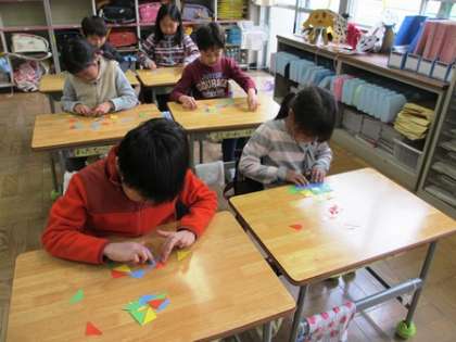 今日の1年生 公開日 2017/02/22 更新日 2017/02/22 1年 今週の図工では、先週に引き続き入学式の飾りを作りました。 動物に耳、目、鼻、口、手などをつけ、その後絵の具を使って台紙に草や家など思い思いの絵を描きました。 算数では、今日から「かたち」の学習に入りました。 色板を並べて、ヨットや家、お花などいろいろな形を作りました。 いいね(0)