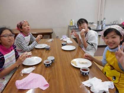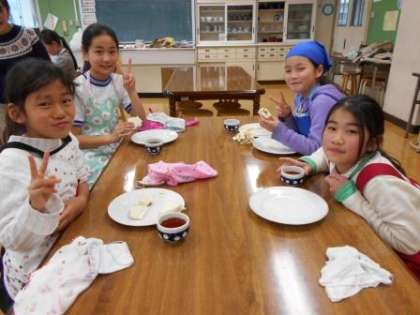 みんなで決めた果物を、慎重に安全にカットし、グループで協力しながら、