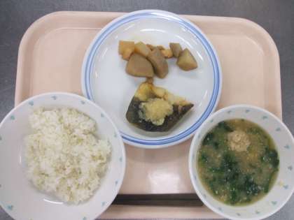ごはん、ほっけの文化干し焼き、かぶのすりながし汁、
